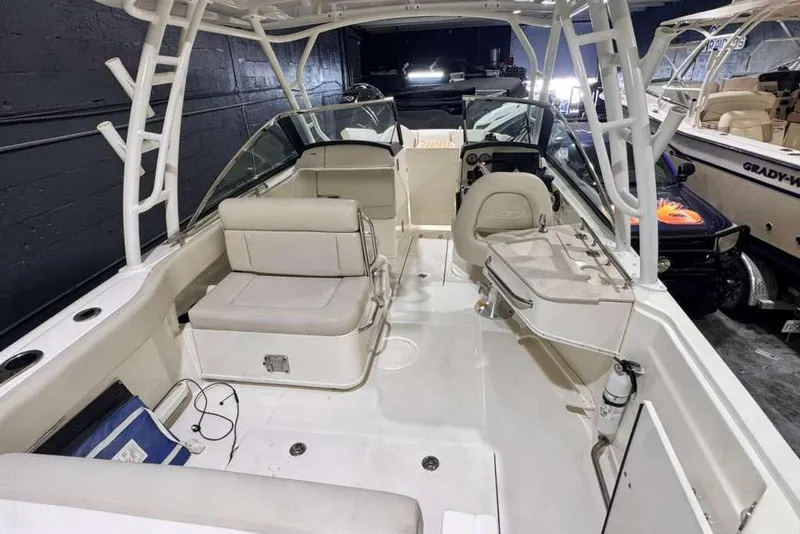 - Next-level aft seating stows seamlessly to expand a large cockpit area for fishing or entertaining.