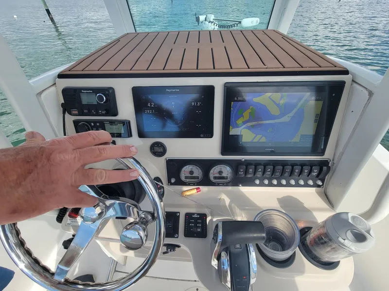 2018 Boston Whaler 240 Dauntless, This Pro series Center Console with upper station comes With 350 HP Mercury 4 stroke Verado motor with 24 MONTH WARRANTY, 100 hour service just completed, 4 batteries, on/off switch, battery charger, Heavy duty Jackplate, Active Trim in-dash, compass, in-dash depth gauge, Garmin GPS Fishfinder, Fusion sound systen with Bluetooth, Sirius XM, VHF w/ distress, Raymarine depth finder, trim tabs, rocket launchers, Minn Kota Ulterra 112lbs trolling motor with remote, Powerpole with remote, hard t-top, Comfort Seating for the family while out in the sun for fun console covers, 2 live wells, fish box, rod holders, rear bench seat, leaning post, Porti-Potty head, comes with 2019 tandem Magic tilt trailer. For more information or to schedule a time to see this vessel call or text 913-485-4172 or email dave@cmcboats.com. Financing available including those with less than perfect credit. To see a Video Sea Trial of this Vessle go to: https://youtu.be/tGAa_JAHcBc