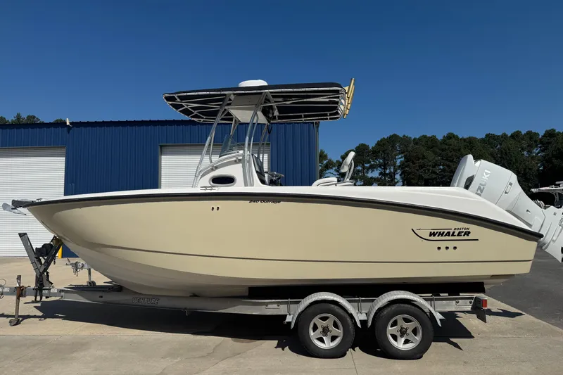 2003 Boston Whaler 240 Outrage with brand new white 300HP Suzuki Digital with 0 hours and 5-year manufacturer warranty. Tank is fine, boat has been freshly painted and many, many new items. New freshwater pump, saltwater pump, macerator pumps, bilge pumps, spreader lights, LED nav lights, upholstery. Items that will be completed, new black T-Top fabric, new Boston Whaler decals, new 12" (x2) Garmin GPSmap, Garmin Radar, Fusion Radio and Amp with JL Audio Speakers and Subwoofer, Garmin VHF, acrylic dash with new switches and circuit breakers. Boat also includes a head that is plumbed with a macerator pump. Purchase price also includes Venture aluminum tandem axle trailer. This one is not going to last long!! More pictures to come as work has been completed. Boat will be ready mid-September 2025.