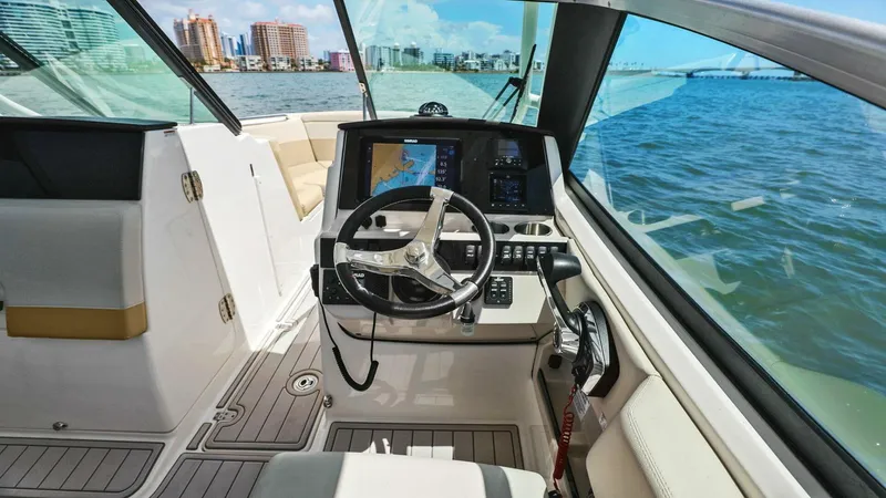 Convertible seating throughout adds versatility, easily shifting between plush lounging and open deck space. Freshwater and raw water washdowns help keep the boat clean and guests refreshed during warm summer days or after offshore runs.