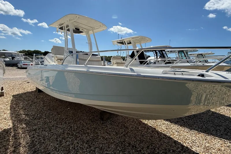 One of our most versatile models, the 250 Dauntless is a perfect synthesis of inshore fishing performance and premium offshore capability. This generously sized 25-ft. bay boat features a roomy center console layout with double forward lounge seats and dual bow seating, and generous storage can be found throughout the interior. Watersports, angling, and cruising amenities abound-and the classic Whaler lines plus your choice of gelcoat colors make this a boat that will turn heads and stand the test of time.