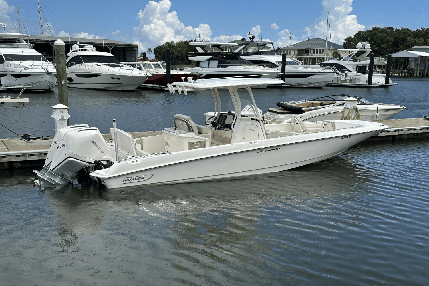Unleash your adventurous spirit with this exceptional, pre-owned 2021 Boston Whaler 270 Dauntless (Stock #214350), now available at MarineMax Pensacola. With only 216 engine hours, this "Unsinkable Legend" offers a unique opportunity to own a meticulously maintained, top-quality center console that seamlessly blends hardcore fishing capability with luxurious family comfort. Whether you're targeting offshore giants, exploring shallow bays, or enjoying watersports, the 270 Dauntless is engineered to deliver an unparalleled experience on the water.