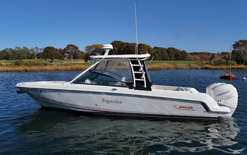 2017 Boston Whaler 270 Vantage, a versatile and well-maintained vessel perfect for both fishing and family outings. Equipped with Raymarine radar and GPS, this boat ensures precise navigation and safety on the water. Powered by twin Mercury 300 Verados with only 265 hours, it offers exceptional performance and reliability. The Mercury joystick provides easy docking and maneuvering. Always professionally maintained, this boat is in great condition and ready for its next adventure.