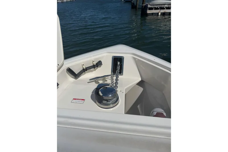 - Forward in-floor storage / fishbox with pump-out and two 5 gal buckets