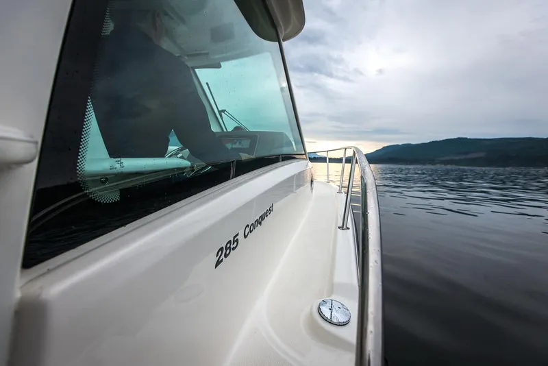 Aboard the 285 Conquest®, anything is possible. Comfort-minded features and amenities enable active day cruises, serious saltwater fishing runs and impromptu overnighting with equal aplomb. Design details throughout maximize helm visibility, walkaround space, seating comfort and more. When not entertaining a crowd in the generous cockpit, head offshore to chase the big fish. Choose from three hardtop options and let the 285 open your horizons. Whaler knows what you need in a confidence-inspiring boat.