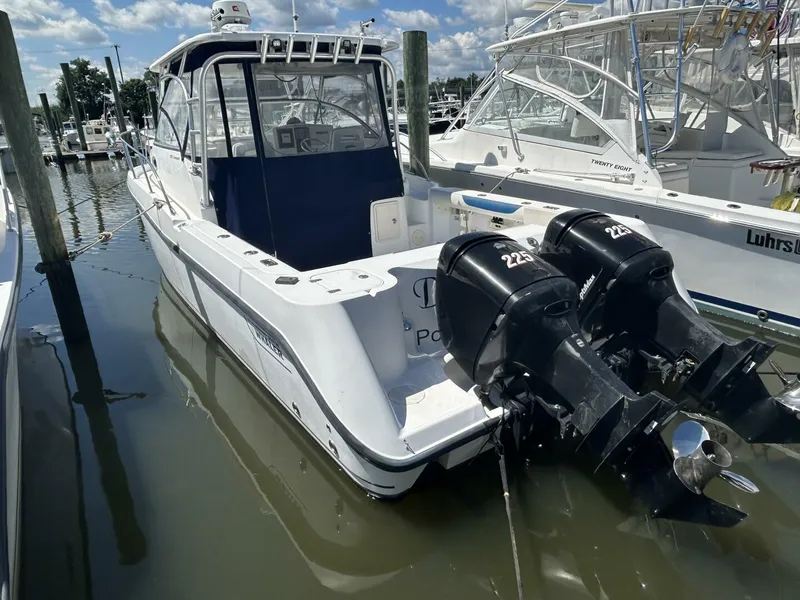The 2004 Boston Whaler 305 Conquest is a versatile and seaworthy vessel perfect for both fishing enthusiasts and cruising aficionados. This well-maintained boat boasts a spacious cabin with ample sleeping accommodations, a fully equipped galley, and a luxurious head compartment. The helm area features advanced electronics and comfortable seating for the captain and guests. The deep-V hull design ensures a smooth and dry ride, even in choppy waters, while the twin Mercury Verado outboard engines provide excellent performance and fuel efficiency. With plenty of fishing amenities, including rod holders, bait prep stations, and a large fish box., the Boston Whaler 305 Conquest is ready for your next adventure on the water!