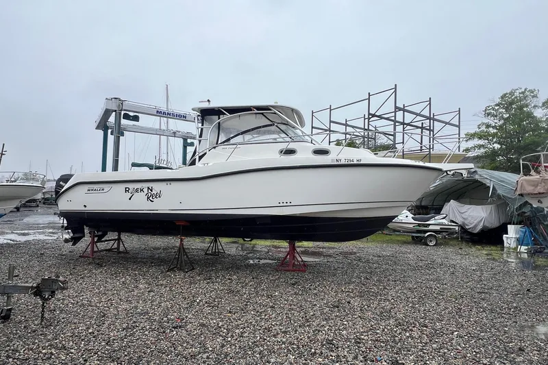 THE BOSTON WHALER 305 CONQUEST IS A HEAVILY-BUILT CRUISER WITH EXECUTIVE CLASS AMMENITIES THAT TAKES EXPRESS BOAT CONFORT AND VERSATILITY TO THE NEXT LEVEL. SHE BOASTS AN IMPRESSIVE 58 SQ. FT. COCKPIT - PERFECT FOR FISHING AND/OR ENTERTAINING OR BOTH. SHE HAS THE NEW HULL DESIGN WHICH COMBINES QUICK PLANING CAPABILITIES WITH A SMOOTH, DRY RIDE. HER HELM DECK IS ELEVATED FOR SUPERIOR VISABILITY BOTH FORE AND AFT AND HER RECESSED SIDE DECKS PROVIDE A MORE SECURE FEELING WHEN ACCESSING THE BOW DECK. HER CABIN IS UPSCALE, WARM AND INVITING WITH RICH ACCENTS INCLUDING CHERRYWOOD CABINETRY, SOLID SURFACE COUNTERTOPS, A TEAK ANS HOLLY SOLE AND DECORATOR VINYLS AND ACCENTS. SHE HAS ACCOMMODATIONS FOR FOUR.