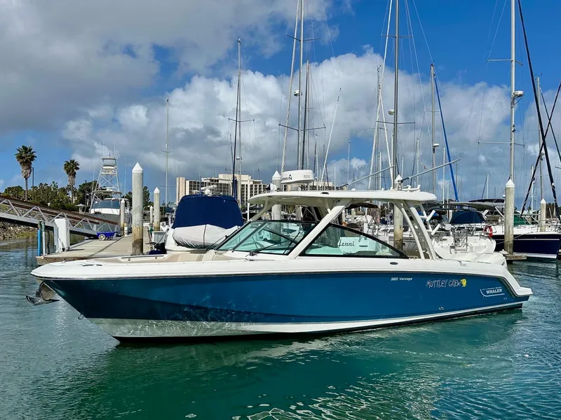 Priced to sell! Well cared for 320 Vantage in excellent condition. Really clean and well equipped with Dual White Mercury 350 Verado's, Joystick Docking and Piloting, Garmin electronics, Premium Sound System, Dual Bait Tanks, Deluxe Prep Center, Cockpit Refrigerator, Stainless Steel Anchor, Windlass, Fishing Package, Cockpit Table, Weather Curtains, Underwater Lighting an Enclosed Head and more. This is the perfect family boat for Southern California. Owned by an experienced boat owner that has had multiple Boston Whalers. 490 hours on motors.
