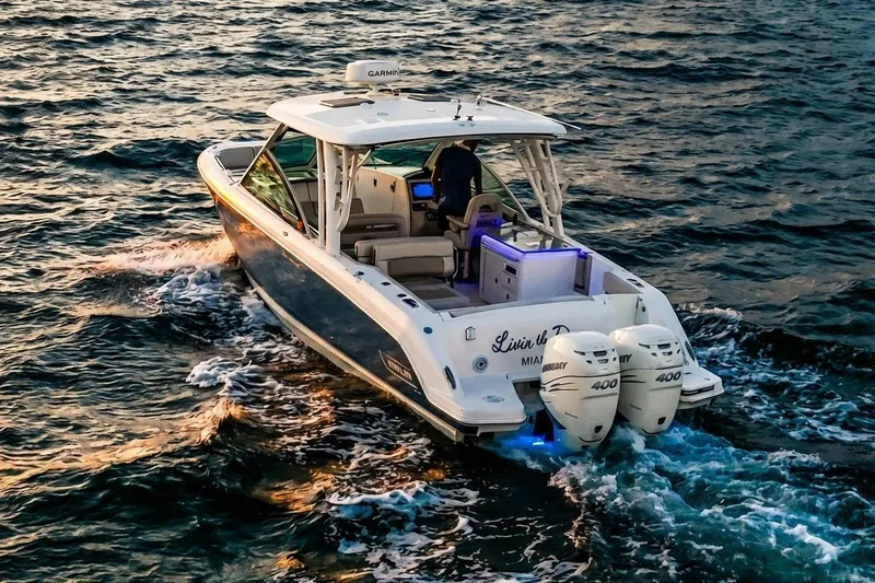 This 2020 Boston Whaler 320 Vantage stands out as one of the best-equipped options on the market. Powered by twin Mercury Verado 400s with only 400 hours, this vessel delivers significantly more performance than most comparable listings, which typically feature 300s or 350s.