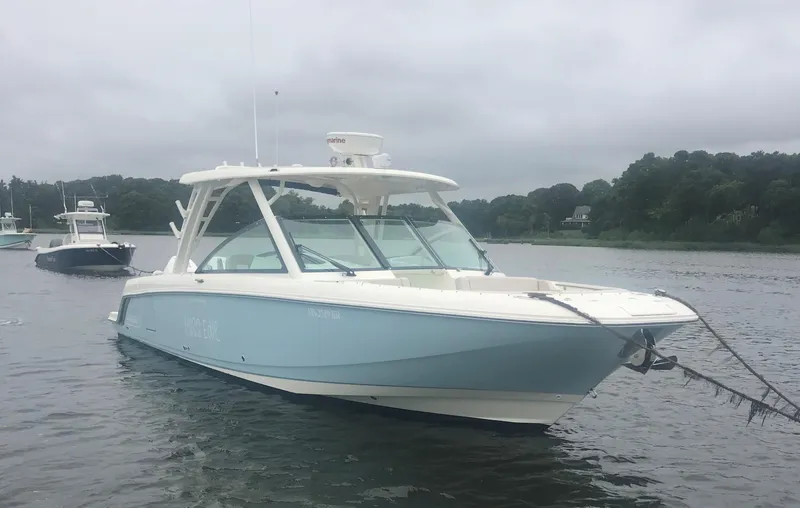 "When the softest, safest ride meets the best equipped dual-console around, new possibilities become eminently possible." This boat is super clean and ready to go. Powered by twin Mercury FourStroke 300 HP engines with Joystick Piloting and Vessel View 7" Display with 109 hours of use. Professionally maintained and winter-stored with all service records available. It's the ideal boat for family fun: a fast run to your favorite fishing ground or a leisurely day entertaining, day-long water sports or Cruising to your favorite destination. Everything you need is already aboard.