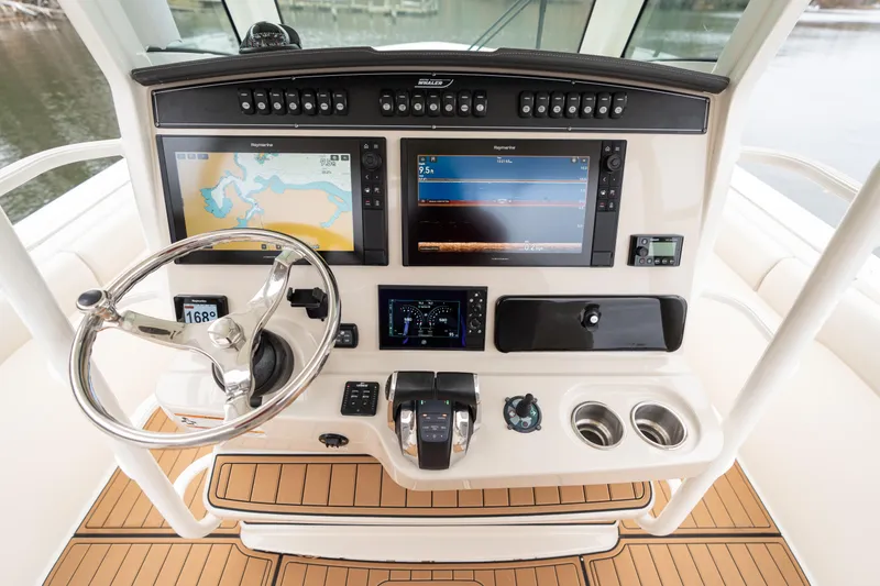 - Dual Raymarine Electronic screens with chart plotter, radar, sonar, fish finder down scan