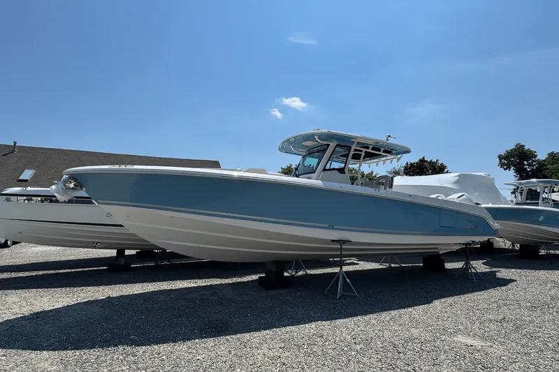 Spacious Layout: The 330 Outrage features a thoughtfully designed deck plan with ample seating, a large cockpit, and plenty of storage, ideal for fishing, cruising, or entertaining.
