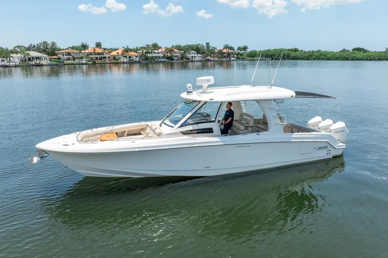 The 2021 Boston Whaler 350 Realm is designed for boating enthusiasts who seek a versatile, high-performance vessel that excels in both fishing and family cruising. It is ideal for anglers looking for a reliable and feature-rich fishing platform, as well as families and groups who want a comfortable, spacious boat for day trips, watersports, and entertaining on the water. With its combination of advanced technology, ample seating, and durable construction, the 350 Realm caters to those who value safety, functionality, and style in their boating experience.