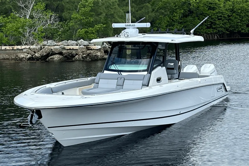 from bow to stern, no species can hide once you have them in your sights. Cutting edge technology integrates all boat functions through an intuitive Simrad® touchscreen. Unrivaled power-matched propulsion systems get you to the destination faster and keep you on the water longer, making this 36-ft. center console boat one of the most powerful and capable offshore fishing boats in its class.
