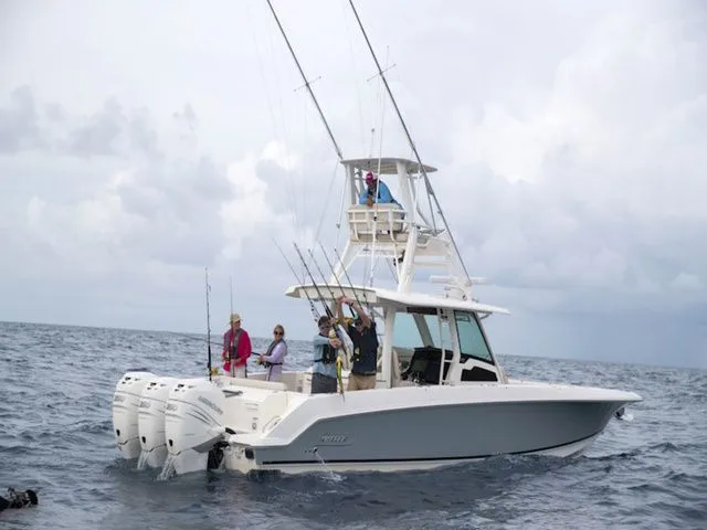From chasing the biggest pelagic trophies to overnight diving trips to the islands, the 380 Outrage brings everything to the game and more. The commanding 38-ft. center console boat features integrated Simrad® technology and standard Joystick Piloting, and comfortable bow lounges welcome passengers with relaxation in mind. In the spacious aft fishing deck, you'll find the angling features to catch any gamefish, and the air-conditioned cabin features a fully enclosed head. Boston Whaler's precision-engineered unsinkable hull and Mercury® engines work together to provide remarkable efficiency, reliability and performance.