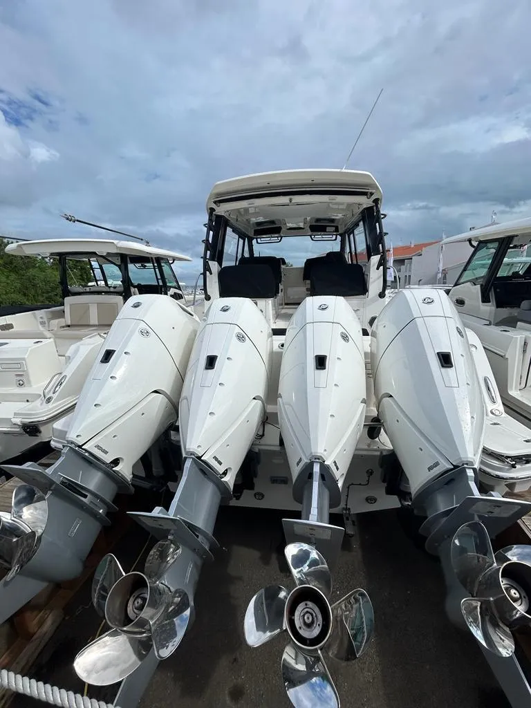 - Quad 300-hp Mercury Verado® engines with optional Joystick Piloting provide impressive power and control.