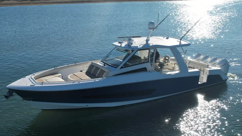 Luxury, best finishes, pedigree. Enjoy cruising and fishing on a legend with todays' best engines. NEW 2025 Mercury quad Verado V10 400 hp, Joystick Piloting, 20 hours, MPP Gold WARRANTY expires October 2030. Correct install and service by the professionals at Al Grover's. Cruise 28-34 knots, 4000-4500 RPM. These V10 engines provide high torque, fast performance, smooth and quiet operation. Idle to 30 MPH in 8.6 seconds, WOW. NEW Blue Metallic hull paint, upholstery skins and canvas. Forward + Rear facing FLIR cameras. Kohler 10 EKD gas generator, 105 hours. Boat had 850 hours prior to the recent repower. Get YOUR Offer ACCEPTED.