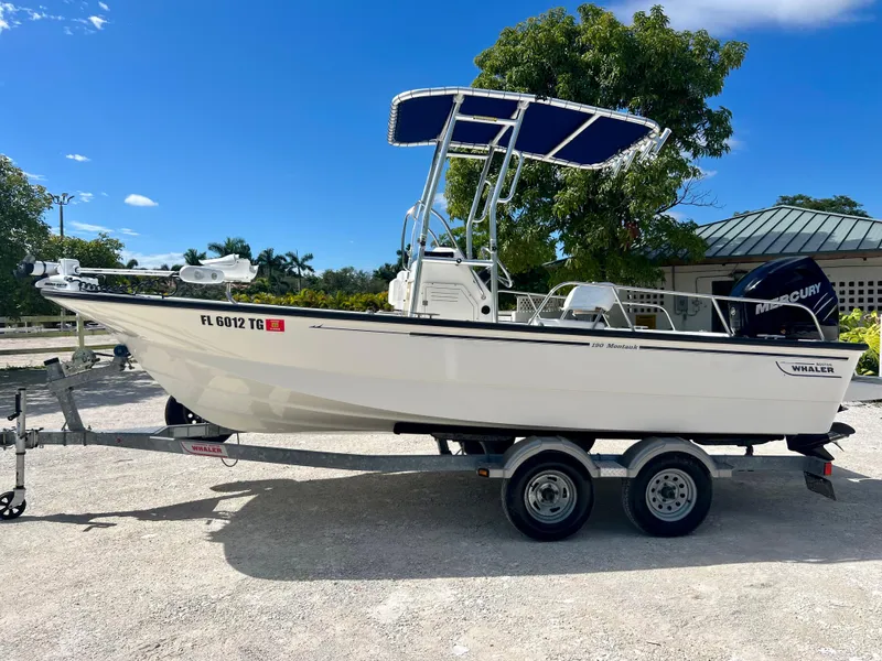 1-Owner 2013 Boston Whaler 190 Montauk with a 2013 Mercury 150 HP four stroke on a factory 2013 trailer.