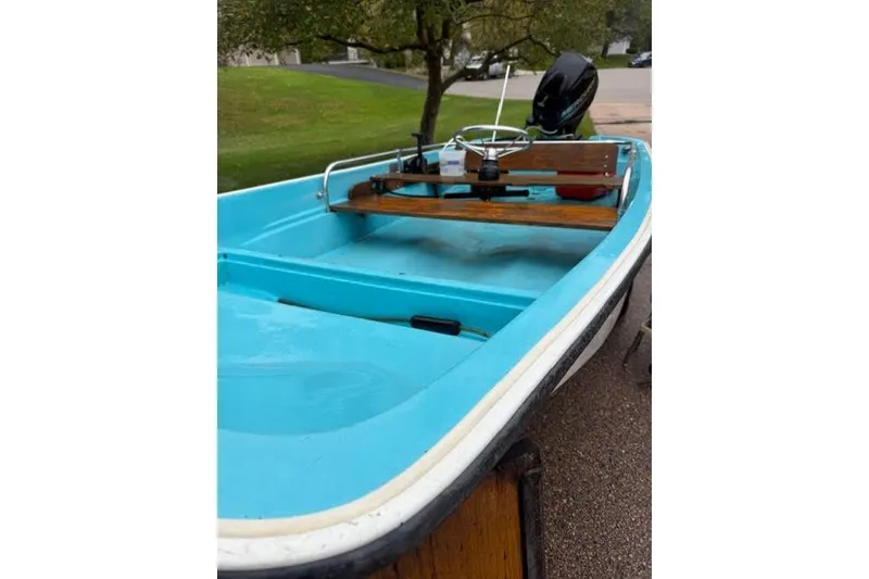 The Sourpuss 13 was produced from 1971-1975 and was the most highly featured model in the 13' lineup. No exact production numbers seem to be available however it is widely known that the Sourpuss model is relatively uncommon and don't come on the market all that often. A couple features which were considered upgrades from the other 13' models are the full width helm bench with backrest and helm in the center of the boat and the stainless steel wrap-around side and aft rail.