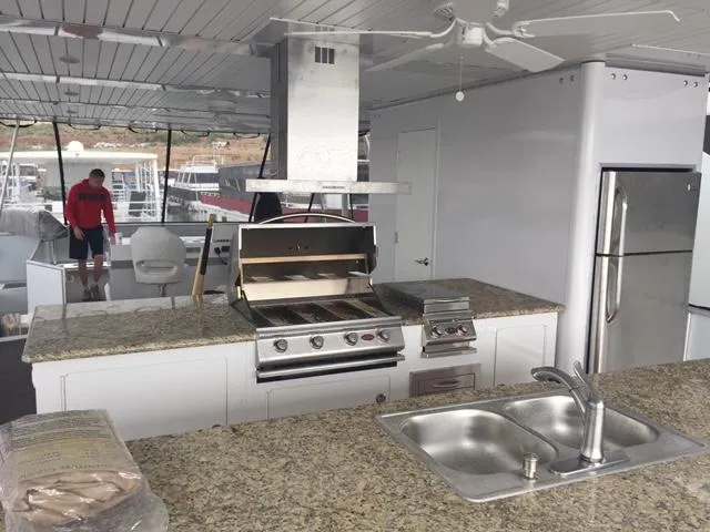 This AMAZING 2015 Bravada Houseboat custom built with GT arches. 5.0 liter Merc engines, not a typical 4.3 6 cylinder. Boat has side and bow thrusters and it makes it easier to maneuver. There is also a lake water system that filters the lake water to give an endless supply of water.