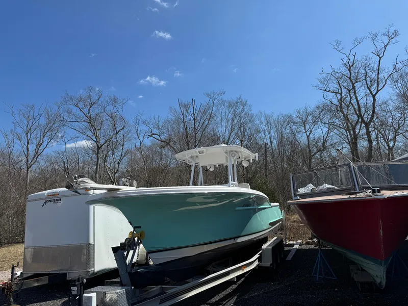 Check this Buddy Davis Center Console out with brand new Yamaha 300's! Just shy of 40 hours she is fully equipped with simrad electronics and a trailer. Transferable 5 year warranty on the engines included.