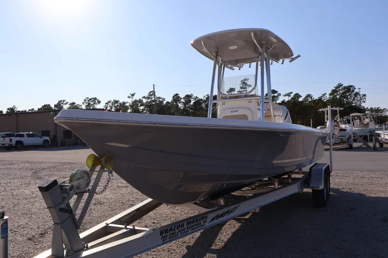 2026 BULLS BAY 2400 w/ DF250TXW SUZUKI FOUR STROKE AND ROAD KING ALUMINUM TANDEM, TORSION AXLE TRAILER. INCLUDES ALL STANDARD FEATURES PLUS THE FOLLOWING FACTORY OPTIONS:SILVER HULL COLOR; DELUXE HARD TOP w/ RADIO BOX; DUAL BATTERY SWITHCH w/ DUAL BATTERY SET UP; SWIM PLATFORM; TRIM TABS; DELUXE LEANING POST/TACKLE/ COOLER SLIDE w/ COOLER; PIONEER AUDIO STEREO SYSTEM w/ 4-SPEAKERS; BENCH SEAT w/ BACK REST.