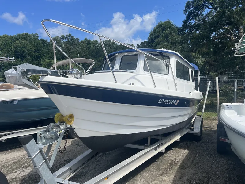 The 2022 C-Dory 26 Venturi is a high-quality, ruggedly built pilothouse cruiser designed for serious boaters who prioritize durability, functionality, and versatility. Constructed with a solid fiberglass hull and no wood in the transom, it delivers exceptional longevity and resistance to rot or structural failure. The boat features a semi-planning hull with flat chines that provide excellent fuel economy, stability, and predictable handling in a range of sea conditions. The fit and finish reflect C-Dory's traditional craftsmanship, with a clean, utilitarian aesthetic focused on performance rather than luxury. Inside the cabin, the layout is compact yet efficient, offering a dinette, galley, sleeping berth, and enclosed head. Quality stainless hardware, robust mechanical systems, and easy-to-maintain surfaces add to its practical appeal. The 2022 model benefits from subtle refinements over earlier versions, including improved ergonomics and modernized electronics options. Ideal for coastal cruising, fishing, or overnight adventures, the 26 Venturi blends seaworthiness with tailorable convenience.