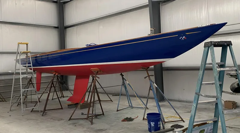 - Awlgrip "Royal" blue topsides Awlgrip "Off-white" boot stripe, Pale Gold cove stripe