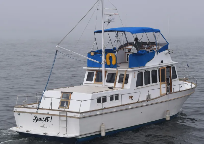 The Californian 42' LRC was very popular traditional style trawler. There were more than 200 made over her lengthy production run. There are two cabins and two heads. The staterooms are at opposite ends of the boat offering privacy. Solid fiberglass hull construction. Economical Perkins diesels, wide side decks, flybridge, sun deck and practical layout makes her very appealing. Makes for a great boat for friends & family for cruising, weekend getaway or live aboard. She is currently at the Bay front Marina Right across the street from the New Gayloard Pacific Hotel. Possible slip transfer, give us a call !