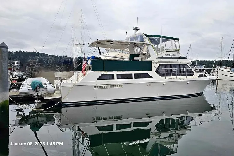 Introducing the stunning 1988 Canoe Cove Tri-Cabin, a remarkable motor yacht that combines elegance and functionality. With an overall length of 52 feet, this vessel is designed for comfort and adventure on the water. The semi-displacement fiberglass hull ensures a smooth ride, while the powerful Detroit 8.2L inboard engines w/3900 hours, each delivering 250 hp, provide reliable performance with a cruising speed of 9 knots. This yacht features two well-appointed cabins and two heads, offering ample space for relaxation and privacy. Equipped with an electric windlass, a launch-able dinghy w/outboard from the swim step, enhancing the ease of anchoring, making your boating experience more enjoyable. The interior is thoughtfully designed, providing a perfect blend of style and practicality. Whether you're cruising along the coast or hosting friends, the Safe n Sound is ready to create unforgettable memories on the water. Owner financing available.