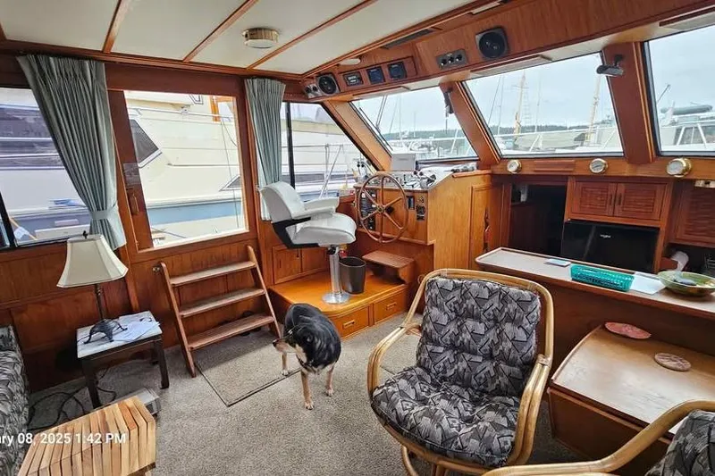 Safe n Sound is an excellent 47' yacht built in BC to very high standards, enhanced by factory with larger cockpit and engine room (LOA 52' w/dinghy), 10' Achilles RIB w/Merc 4hp 4-stroke. It features twin Detroit 8.2L diesels, a bow thruster, and a new $12K+ suite of SIMRAD electronics, washer and dryer, modern fridge and stove. She was reconfigured with a large 7' stand-up engine room and an outside door to the cockpit. The ample lazarette holds an 8K Onan generator, house batteries, and plenty of additional space for crab/shrimp gear. The flybridge is huge and can accomdate 15-20 people, great boat for entertaining. Will delivery to Nanaimo, Powell River and south. Everything works and this boat has air conditioning. This yacht is ready to shove off for parts unknown, today.