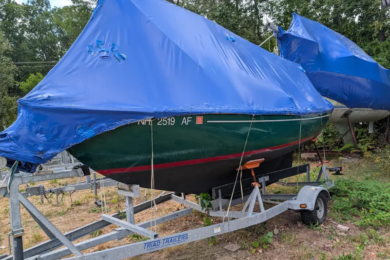 This Cape Dory Typhoon is here at our showroom, and can be viewed anytime. It is presently covered for the coming season, but can be boarded and viewed. The sail inventory has a Main, Jib, and Genoa. The mainsail is a 2016 Neil Pride, and the other headsails original. The hull was repainted in 2016 as well. It also comes with a Mercury 4/HP outboard, and sits on its custom Triad trailer. Sail hardware includes the mainsail cover, and Schaefer headsail furling