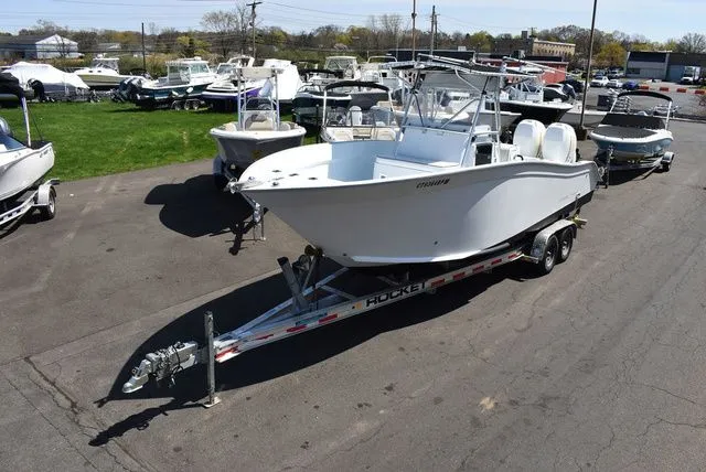 You are viewing a 1996 Cape Horn 27 Offshore Center Console powered by 2007 Twin Mercury 275hp Verado four stroke outboards with power steering, stainless steel props and white in color. Mercury Smartcraft gauges read 1348hrs. This complete package includes a 2022 Rocket tandem axle aluminum trailer with disc brakes on both axles. This Cape Horn is 27ft 10 inches long and has 9ft 1in beam. Comes nicely equipped with a Raymarine Hybrid touch E125 GPS/Fishfinder/Depthfinder, VHF Radio, Clarion bluetooth stereo w/ 4 speakers, Upgraded boat colored boat lighting w/ AquaBlaze controller that customizes lighting in Red/Green/Blue/White combinations, Big K-Plane trim tabs, Canvas T-Top with Ebox underneath, Foward and aft spreader lights, Outriggers w/poles, Livewell, washdown, Tackle storage, Compass, Underwater lights, 3 batteries w/ isolator switch in console, Walk-down console for storage or porta potti, self bailing cockkpit, storage boxes, bow casting platform, lots of rod holders and more. Boat has exceptional access to wiring behind dash and everything is well labeled and professionally done. Boat shows very well for a 1996 boat which indicates the great care the boat was given over the years. The current owner has gone through a lifestyle change and has asked us to help sell the boat for him. This is your opportunity to buy a big offshore fishing boat for the right price. Contact us by email or phone at 203 466-5384 and ask for Mark or Karl. Thank You, Diamond Marine