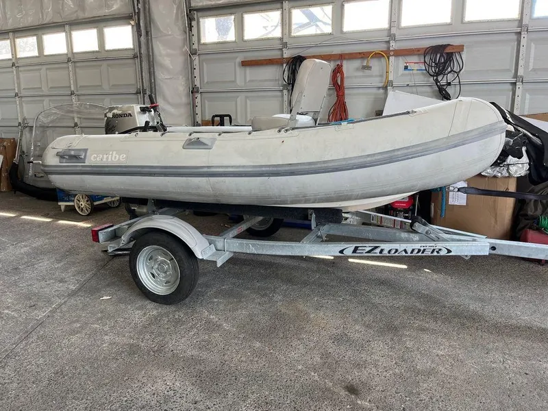 Caribe 8 ft Rigid bottom inflatable with 15 HP Honda, comes with aluminum oars, wheel set for pulling up on beach, foot pump, lifting harness. Starts right up and runs great !
