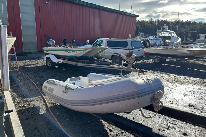 This is a 2005 Caribe C9 RIB, no motor. The boat is in great condition, not used much, inside stored. The 17.3" tubes are larger than some inflatables and give a drier, more stable ride and they is very good for use as a dinghy for boarding and getting off larger boats. This will take up to a 15hp outboard and 4 four people, great for gunkholing. Great for the grand kids. It has three air chambers, 3 lifting rings, SS bow eye, non skid deck, 2 oars w/horns, and rowing seat. There are chocks for a gas tank. A new model is over $4300 and this is a very nice boat for half the price.