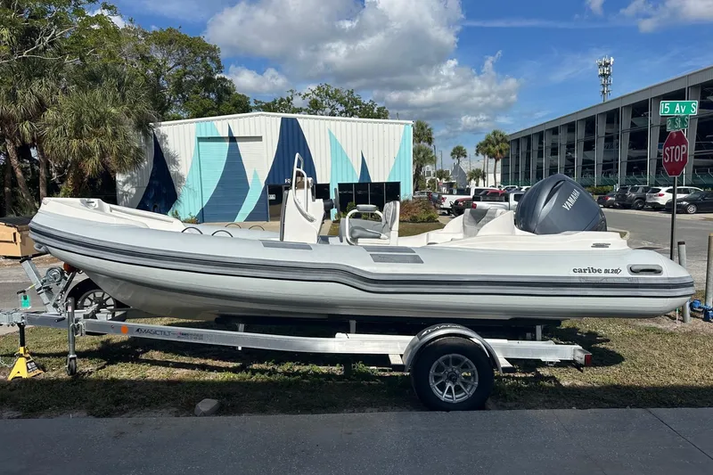 Caribe DL-20S powered by a Yamaha F150 makes a great tender to a larger yacht or perfect day boat for those who want a stable, seaworthy platform. A freshwater transom shower makes beach time even more enjoyable. Aluminum trailer available.
