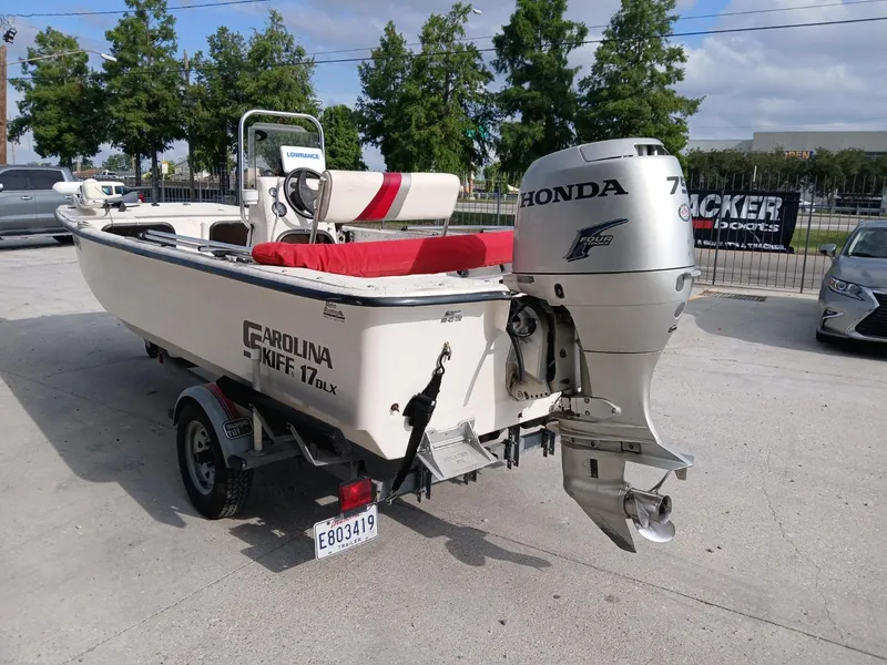 Contact Collin for more info! (504) 314-92882004 Carolina Skiff 17 DLXHonda 75 4-Stoke (205 HOURS)Single Axle Trailer***FINANCING AVAILABLE***Trades AcceptedMinn Kota Trolling MotorBimini TopOn Board Battery ChargerLowrance GPS - DepthFinderTrailer IncludedThe 2004 Carolina Skiff 17' is a durable and highly versatile line of 17-foot boats renowned for their stable, wide-beamed hull design and 100% composite, wood-free construction. This robust construction makes them low-maintenance and resistant to rot in harsh marine environments. The flat or near-flat bottom hull provides an exceptionally shallow draft, allowing access to remote creeks, marshes, and flats not reachable by other boat types. Available in models like the DLX, Semi-V, and Sea Chaser, they offered a spacious, open deck layout that served as an ideal, stable platform for saltwater fishing and general recreation. Overall, the 2004 17' models were designed as practical, reliable, and versatile vessels suited for a wide range of inshore and coastal boating activities.Contact Collin for more info! (504) 314-9288