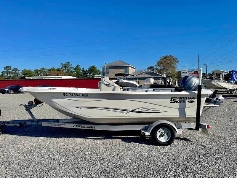 This is your opportunity to take advantage of the depreciation already taken place on this extremely clean Carolina Skiff. Why spend thousands more on a new one when this has all that you need to get out on the water safely and comfortably? Arguably the best 17' skiff out there, the 178 DLV offers a wide beam and lots of deck space for you and your friends or family. Whether you are looking for a good fish bite or a good bite of fish, this boat will run efficiently and quickly to your favorite spots. A huge storage area under the console along with twin boxes on the forward deck will contain all the gear you bring and the two separate livewells can circulate the water for your bait or use them as coolers for your beverage of choice. A solid Yamaha 70 will push this boat rather quickly while barely burning any fuel at all. A nice bimini is there for the shade when necessary and all of the cushions are in great shape to add comfort to your day. This low hour boat is on the INCLUDED TRAILER and ready to transport your water dreams to any destination you choose. Come see it for yourself and I'm sure you will be pleasantly surprised with this one.