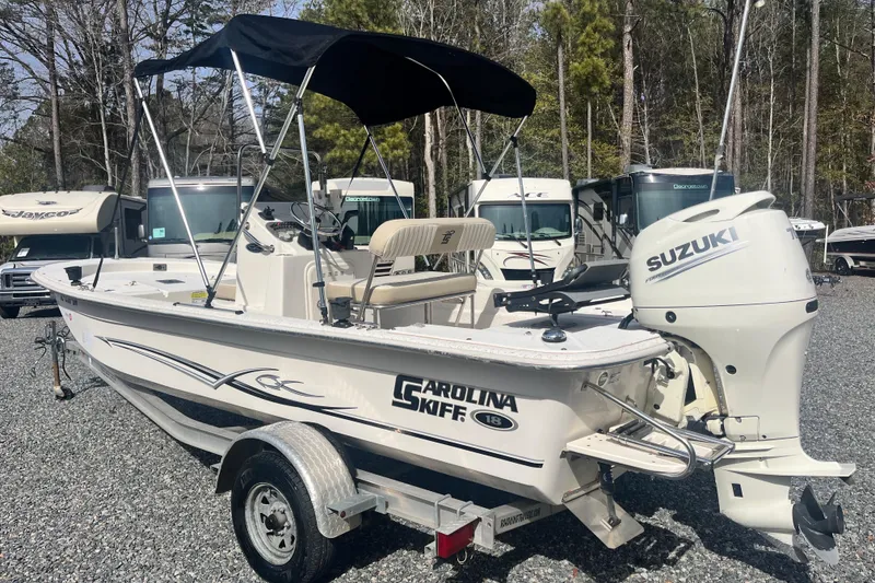 If you are shopping for a compact center console or skiff and want shallow‑water access, low running costs, and simple ownership, this preowned 2019 Carolina Skiff 18 JVX with Suzuki 70 hp is a strong candidate.