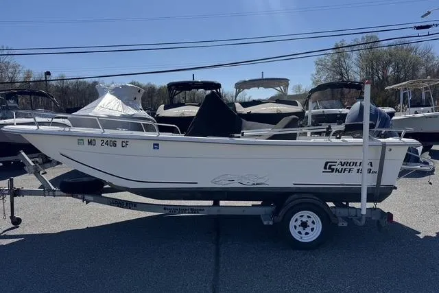 This 2011 Carolina Skiff 198 DLV is a well-maintained, single-owner center console boat, powered by a reliable Yamaha F90 outboard engine with 240 hours of use. The boat features a fiberglass/composite hull and comes with a 28-gallon fuel capacity, ensuring ample range for enjoyable trips on the water. It includes essential equipment such as a Garmin 541s chartplotter/sounder for navigation and a Uniden VHF radio for communication. Additional features include a Bimini top to provide shade, as well as front and rear grab rails for enhanced safety while onboard. The boat has been meticulously maintained and stored on a single axle galvanized trailer, making transport straightforward and secure. It is also bottom-painted, further protecting the hull. This Carolina Skiff 218 DLV is in very good condition, offering a versatile and practical design ideal for various water activities. Whether fishing, cruising, or simply enjoying a day on the water, this boat is well-equipped to meet your needs.