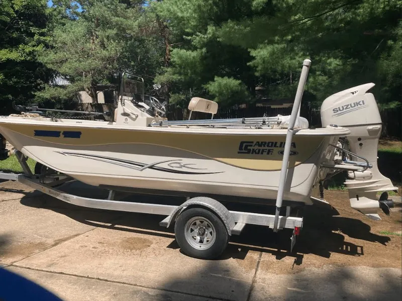 Step aboard the 2017 Carolina Skiff 198DLV, a 19-foot center-console skiff engineered for performance, stability, and versatility. Built with a durable fiberglass hull and Carolina Skiff's signature DLV design, this boat delivers smooth rides, shallow-draft access, and unmatched stability for anglers, families, and adventure-seekers alike. This particular boat has been freshwater-only, meticulously maintained, and has under 80 hours on a 115HP Suzuki 4-stroke outboard - essentially "like new." With a trailer included and turnkey setup, it's ready to hit the water immediately, whether you're planning a day of fishing, cruising, or exploring lakes and rivers.
