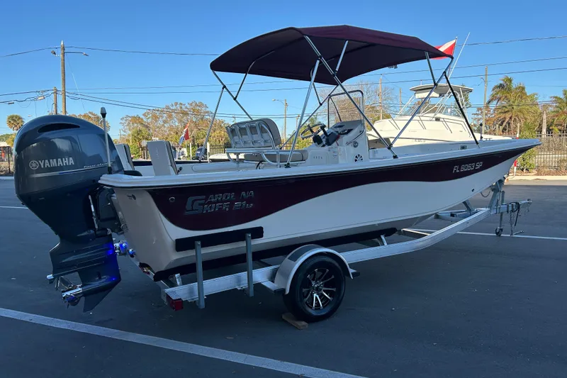 2020 Carolina Skiff 21 LS center console powered with a 150hp Yamaha four stroke outboard with only 163 hours. Boat has 2 live wells, brand new upholstery, Bluetooth radio, underwater lights, courtesy lights, livewell lights and a Bimini top with the boot. Trailer was just completely gone through with new wheels, tires, hubs, lights and new carpet. This boat flys with the 150. Cruises around 35-40 effortlessly. Boat and trailer ready to go! Come check it out today.