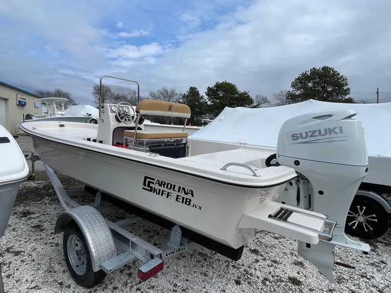 Experience the perfect blend of classic and modern design with the E-Series JVX Center Console. Whether you're an avid angler, a weekend explorer, or a family seeking quality time on the water, the E-series JVX caters to you with value. Cast your line with precision, fish in tidal creeks and coves, or simply bask in the sun-drenched splendor that only boating can provide. Boating possibilities are once again affordable. And if you're seeking an alternative, consider the E18 JVX Tiller Handle. Either way, you're not just getting a boat - you're stepping into a Carolina Skiff lifestyle.