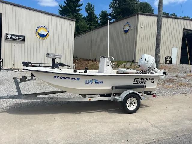 Introducing the 2000 Carolina Skiff J1450, a remarkable freshwater fishing boat that combines durability and performance. With an overall length of 14.9 feet, this fiberglass vessel is designed for stability and ease of handling on the water. Powered by a reliable 2024 Suzuki DF30ATHL5 outboard engine, it boasts only 35 hours of use, ensuring you can enjoy many more fishing adventures ahead. The J1450 is equipped to accommodate up to three passengers comfortably, making it perfect for small groups seeking a day of fishing or leisure. Its lightweight construction enhances maneuverability, while the 3-blade alloy propeller contributes to efficient navigation. This boat is a fantastic choice for those looking to explore freshwater environments with confidence and style. Embrace the thrill of fishing with the Carolina Skiff J1450, where quality meets practicality on the water.