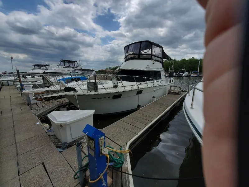 Here is a great Carver Aft Cabin. The boat comes with twin 270 HP Crusaders, generator, marine air conditioning and heat, two heads, full galley to include stove, oven, AC/DC fridge/freezer, microwave, full canvas enclosure, windlass anchoring system plus much more. Please contact us with any questions. The slip is included for the rest of the year and winter storage and putting the boat in the water in the spring.