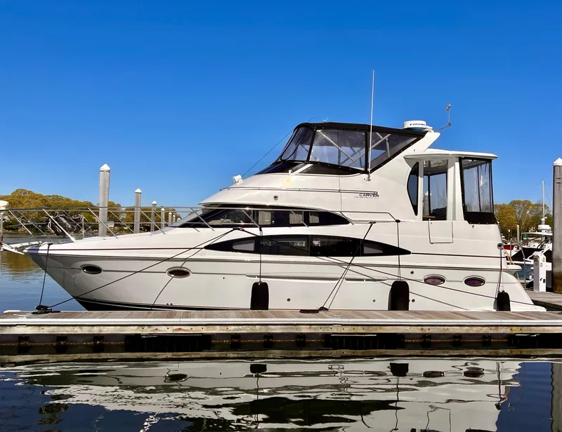 This Carver 396 Aft Cabin Motor Yacht is very popular for cruising and live-aboard. The huge salon with lots of natural lighting and tall ceilings. two stateroom layout with two complete heads, large galley with full size fridge and freezer. Equipped with the preferred low hours Cummins diesels and Kohler generator add to the list of popular options and noteworthy improvements.