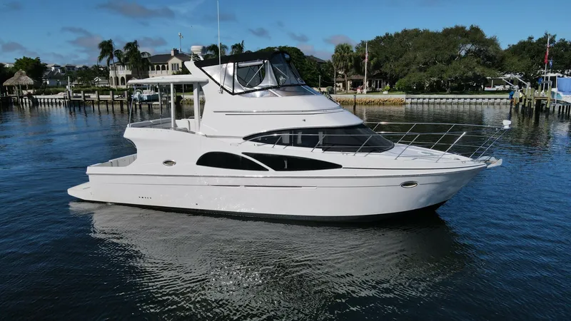 The 2005 Carver 41 Cockpit Motor Yacht is a midsize cruising motor yacht that blends spacious live-aboard comfort with a layout well suited for entertaining or water-oriented recreation. Built from 2005-2007, it features a modified-V fiberglass hull with a shoal draft of about 2 ft 7 in. making it practical for coastal cruising and inland waterway use. The beam is generous for its length-around 13' 5"-providing good interior volume and deck space. LOA (length overall) is about 42' 11".