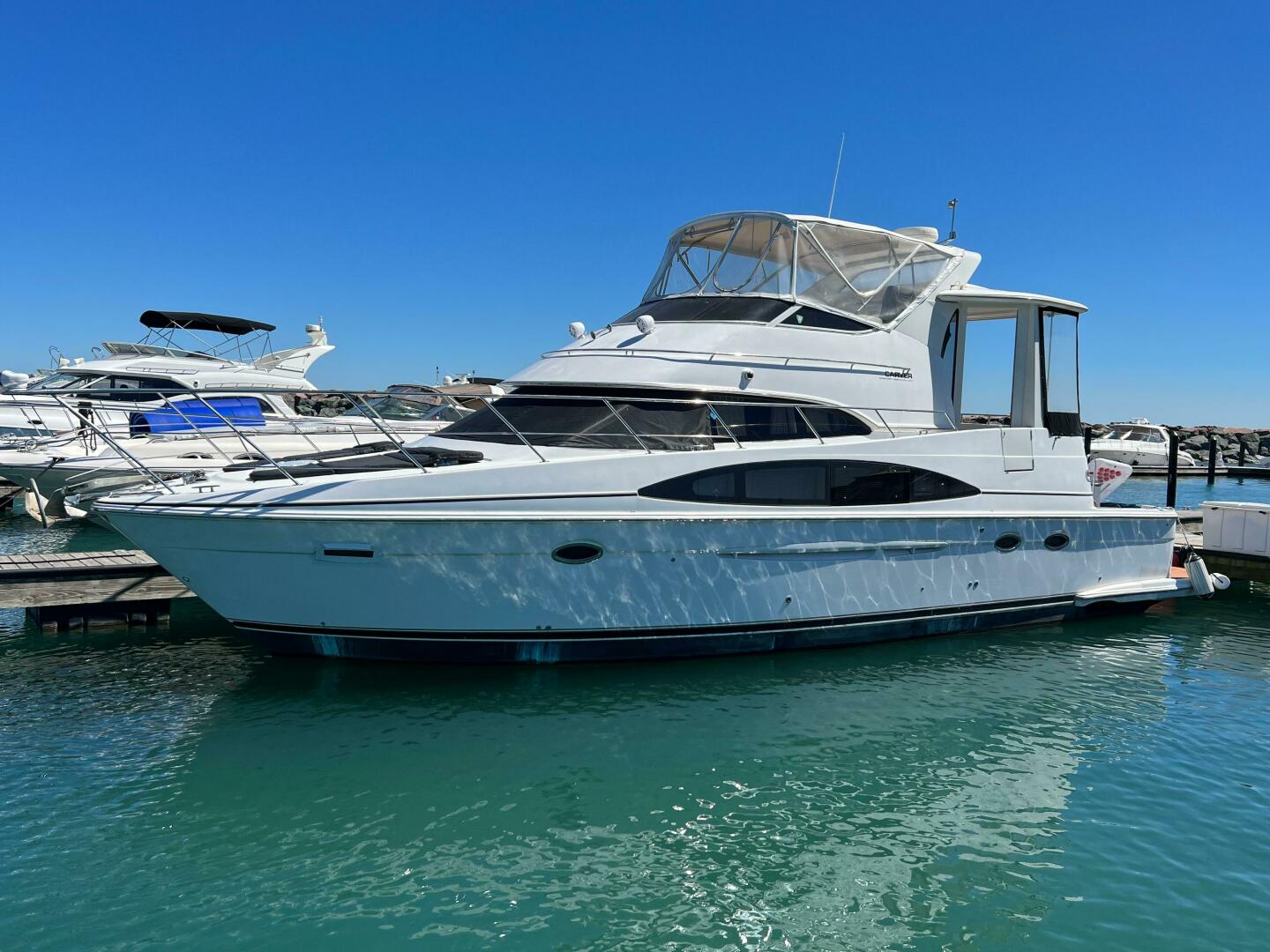 2002 Carver 444 Cockpit Motor Yacht located in Chicago, IL. She is powered by the preferred Diamond Series 68 TA 370 engines w/ 850 hours. This boat has a full array of electronics, bow thruster, generator, and new stereo w/ speakers! The boat offers two heads & two large staterooms. Entertain all your friends and family on this boat for days. The boat was just buffed & waxed and engines serviced. Come see her today!