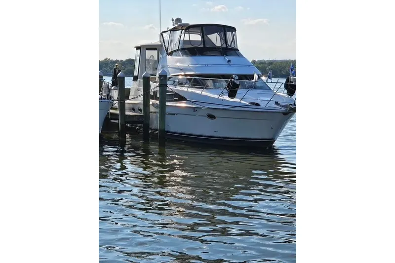 She is Loaded with a Lot of Equipment but some of her highlights are Air Conditioning with Reverse Cycle Heat, Generator with Hush Cover, Full Compliment of Galley Features, Queen Size Pull - Out Sofa Bed which is made of Lambs Leather, Salon Chairs (2) are made of Lambs Leather and are Recliners, Auto Pilot, Rudder Angle Indicator, Depth Finder, Newer Raymarine GPS Chart Plotter, Radar, Engine Synchronizer, VHF Marine Radio, Auto Pilot, Sea-Talk, Volvo Bow Thruster, Search Light, Two Battery Chargers, Cable-Master, Oil Change System, Newer Bimini with Full Enclosure, Aft Hardtop with Newer Full Enclosure with Custom Made Screens and Snap In Curtains, Bow Sun-Pads Recovered, Molded in Steps Throughout, NO LADDERS, Bridge and Aft Deck Carpeting, Newer Raritan Ice Maker on the Bridge, Washable Carpet Runners, Transom Door, Wet Bar, Ice-Maker, Extended Swim Platform, Dockside Water, Fresh Water Washdown, Cockpit Shower, Newer Flat Screen Smart T.V., AM/FM Stereo Radio's with CD, DVD Player, Cherrywood Cabinetry, Full Compliment of Cabin Features, Two Full Heads with Enclosed Showers, Central Vac, Cable TV Hook Up, Plow Anchor with 200' Chain, Safety Inspection by the US Coast Guard Auxiliary and the Fire Boy System serviced yearly, and Soooo Much More as there are Tooo Many Options to List.