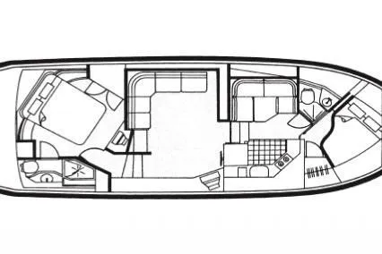 Below, the accommodations are well thought out, offering privacy and comfort for both owners and guests. The layout is ideal for extended cruising or liveaboard use, providing a balance of space and practicality.